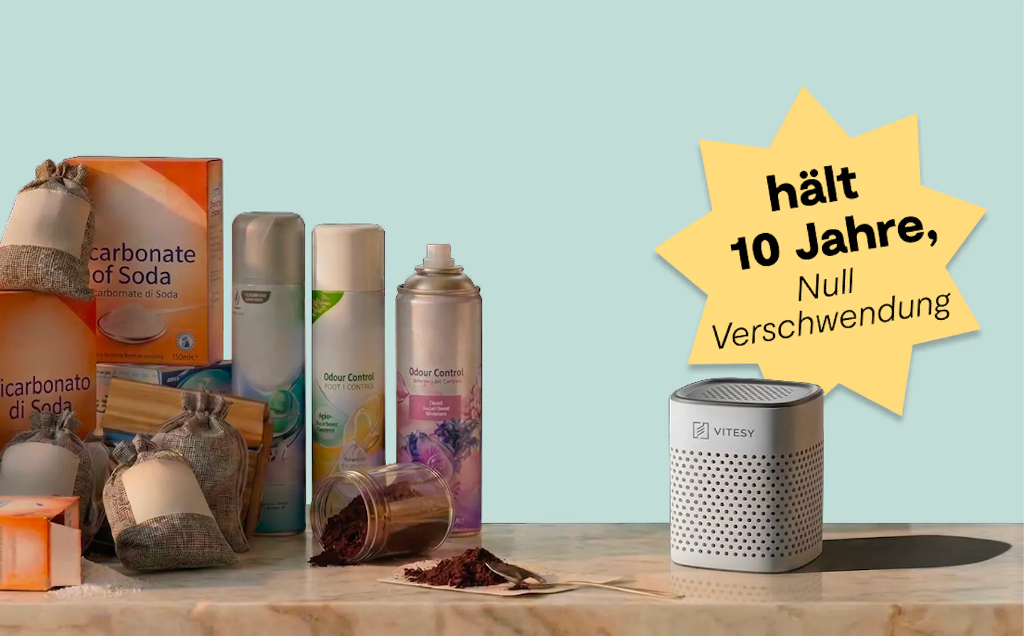 Vitesy Deo braucht Sie nicht. Keine App, kein Strom, kein wöchentliches Ritual. Es funktioniert von allein, lautlos – 10 Jahre lang.